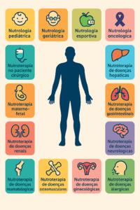 Ou seja, o Nutrólogo pode atuar em todas as áreas da medicina, já que existe uma interface entre a maioria das doenças e aspectos nutricionais.