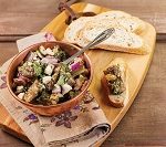 Salada 1: Berinjela com castanha do Pará (ou castanha do Brasil), uva-passa e hortelã